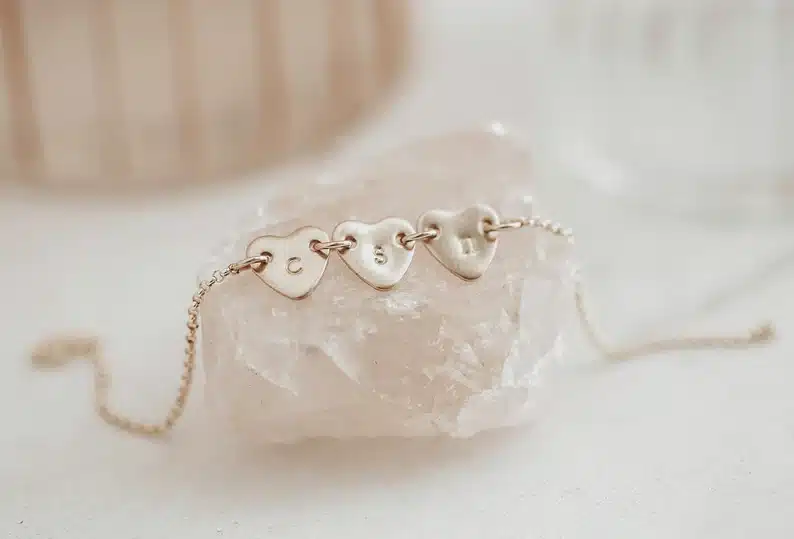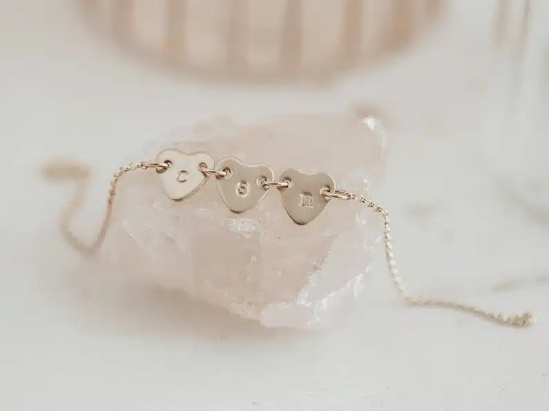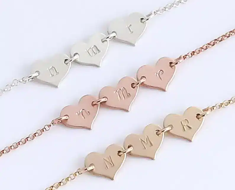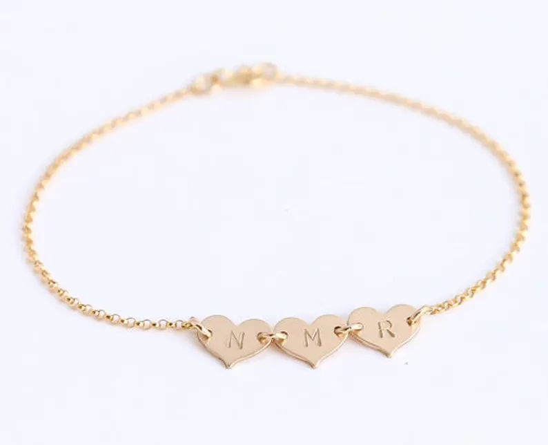 3 Initial Heart Bracelet – Heart Bracelet -Custom Hand Stamped Everyday Jewelry – 14k Gold Filled, Sterling Silver, Rose Gold Fill by Reflection of memories