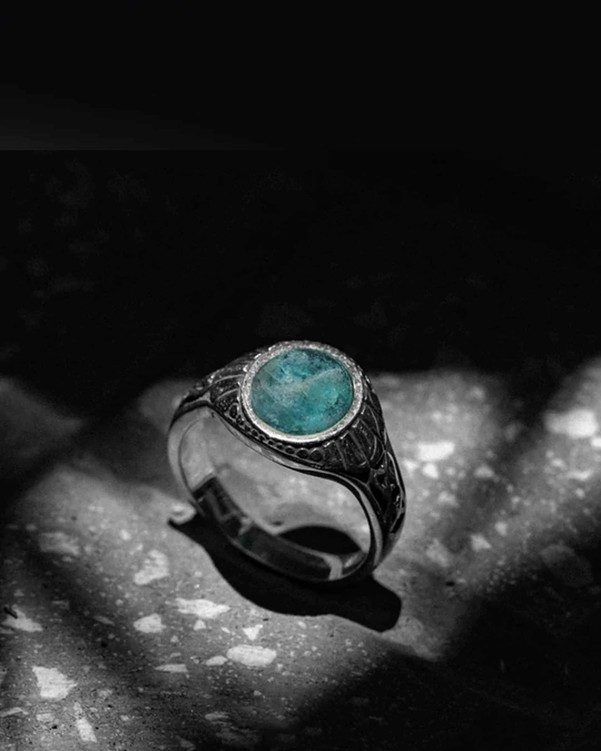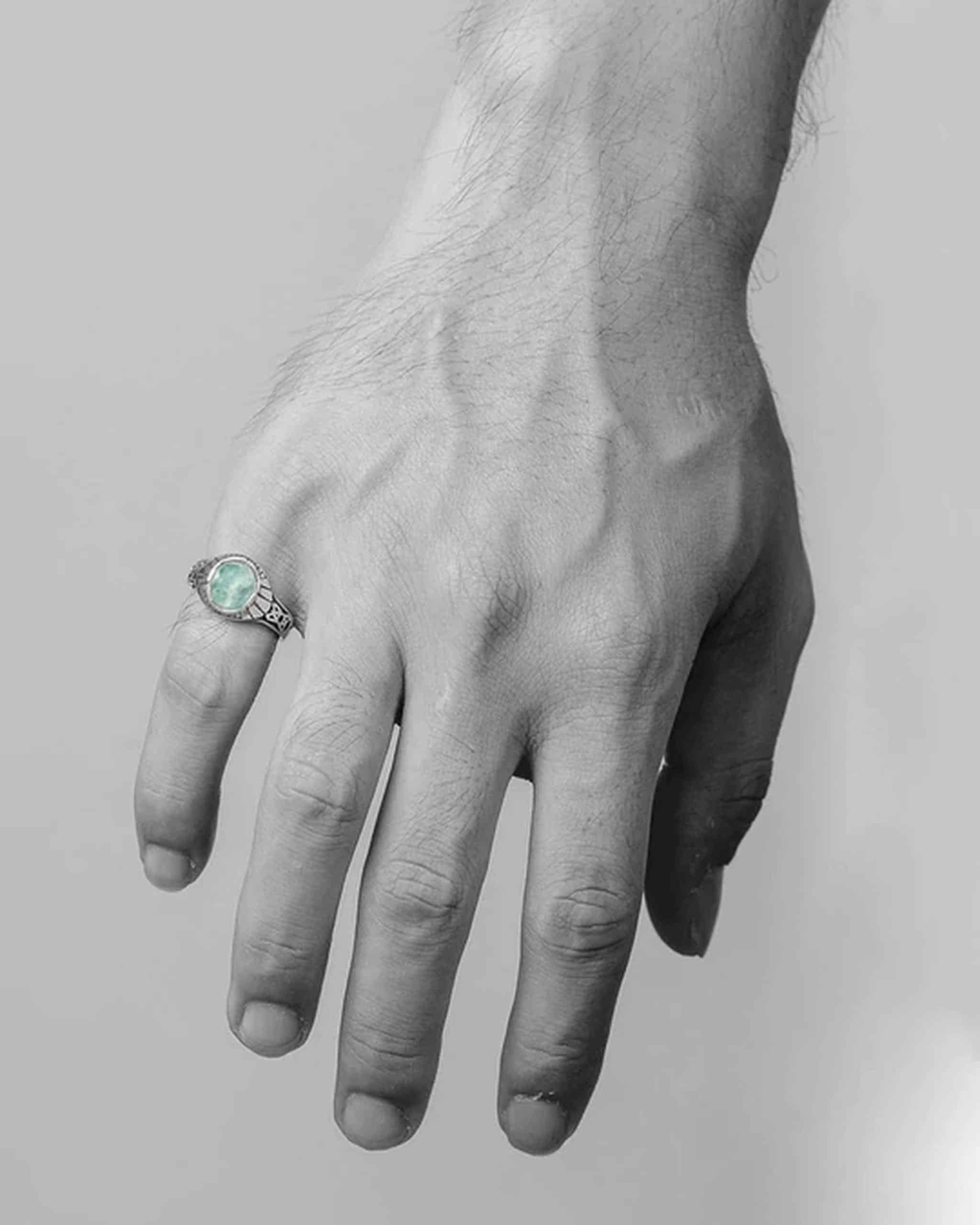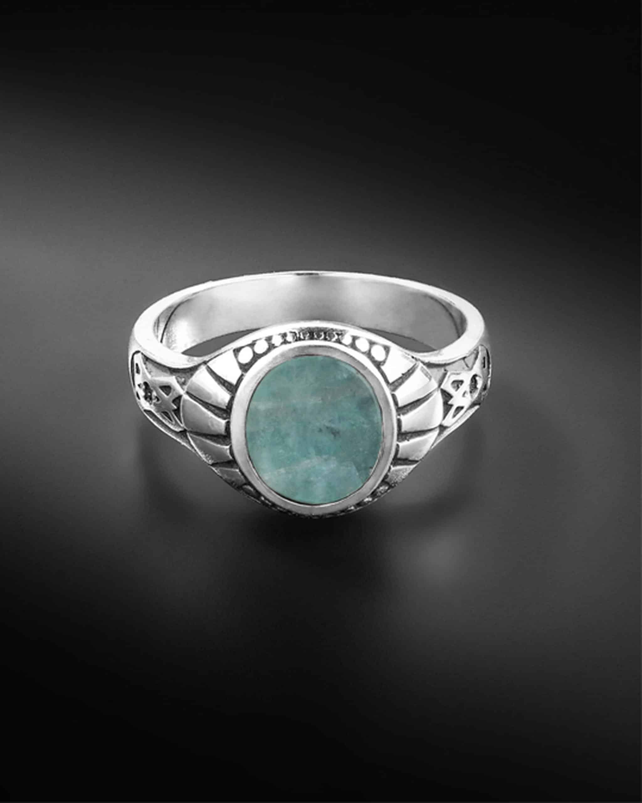 A ring from our Gemstone Ring collection with 3 different types of spiritual gemstones. Handcrafted Sterling Silver Handmade Each sterling silver ring, pendant, earrings and bracelet is designed and hand-carved by master silversmiths Fits most outfits.