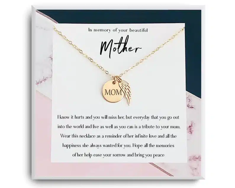 Loss of mother – Remembrance Gift- Memorial necklace for Daughter – Angel wing Necklace – Memorial Jewelry – Gift with card – Mom Necklace by Reflection of Memories