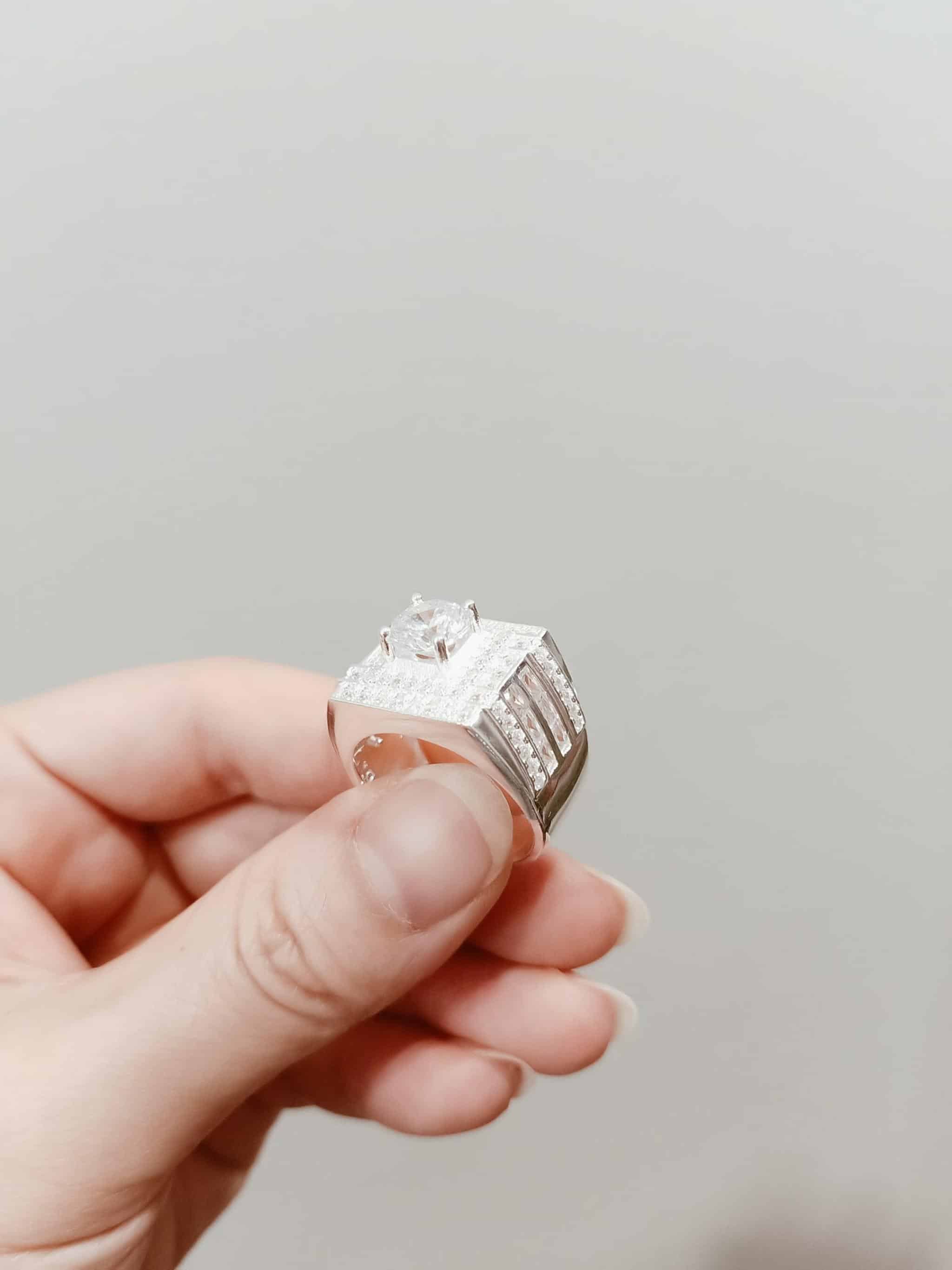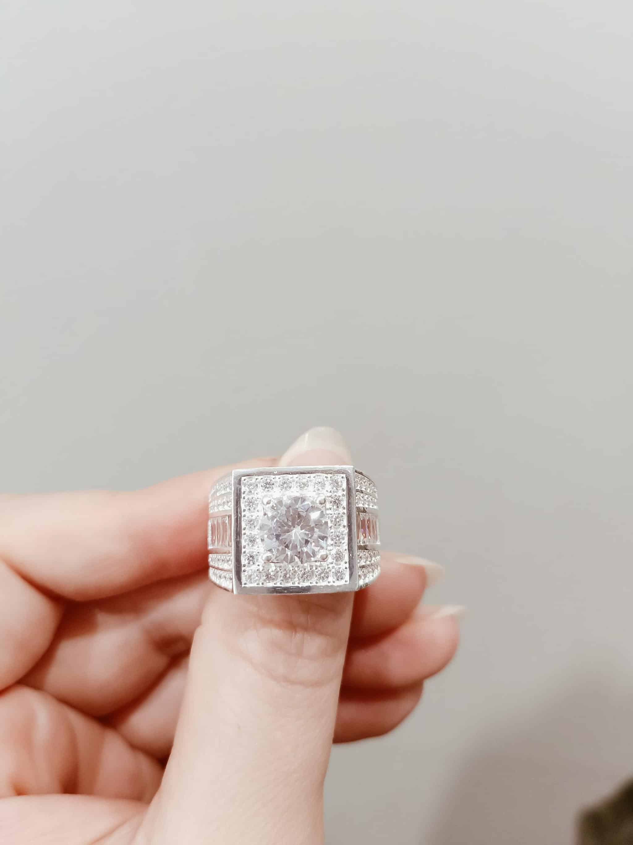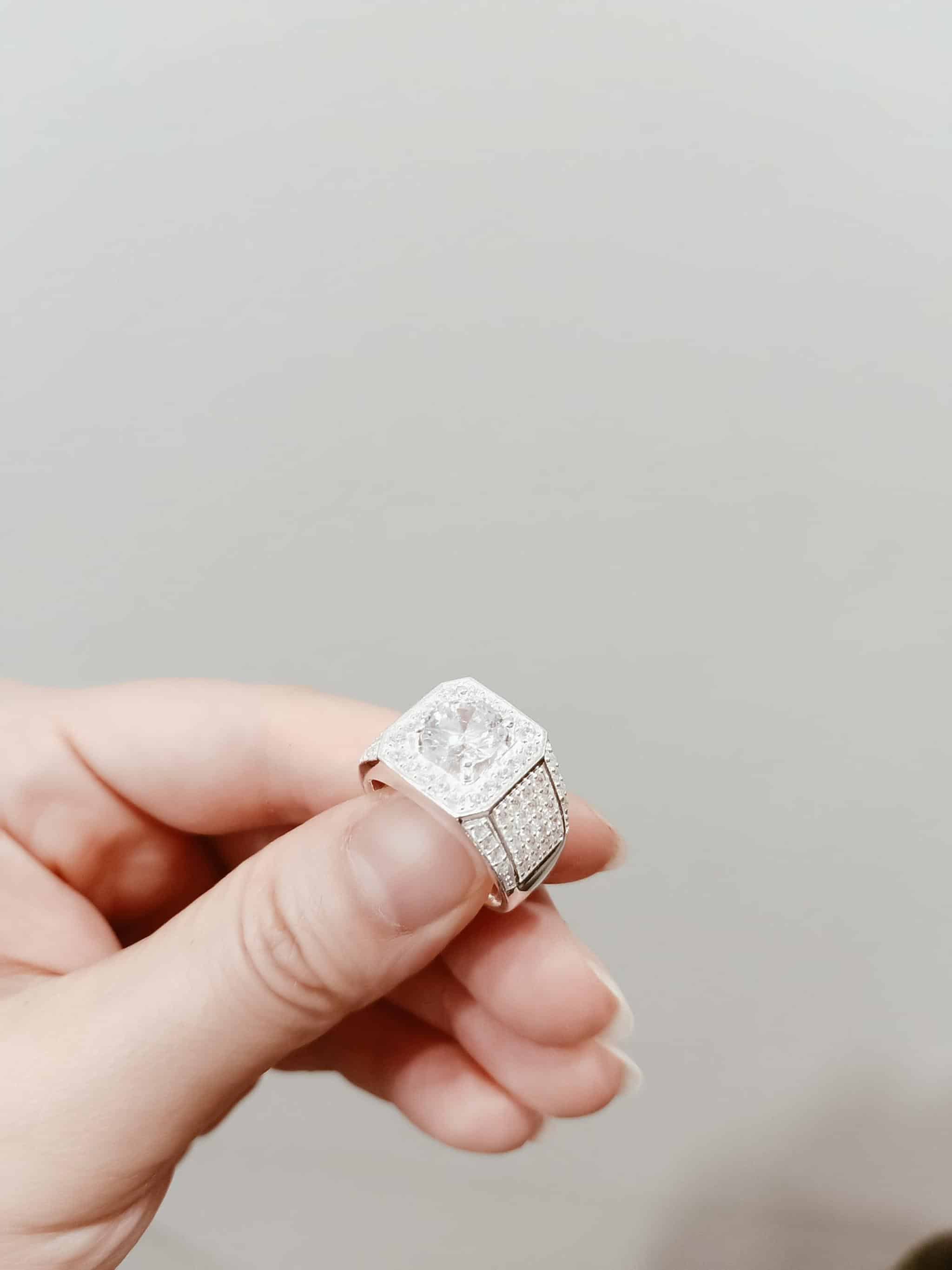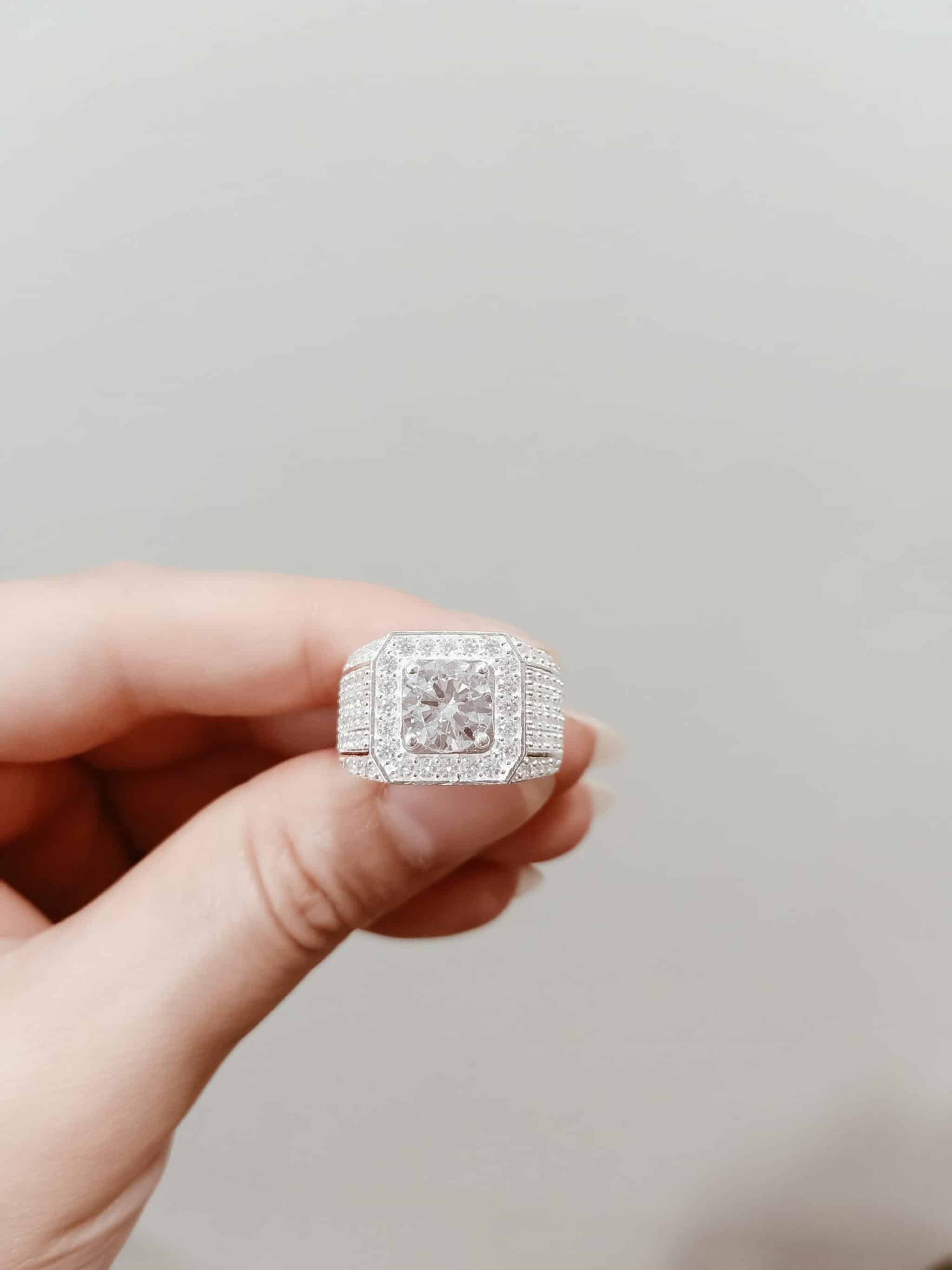 Men’s Round Diamond Big Square Face Pinky Ring Band Iced Out Custom Square Large Simulated Diamonds Silver Ring Hip Hop Bling Gift For Him