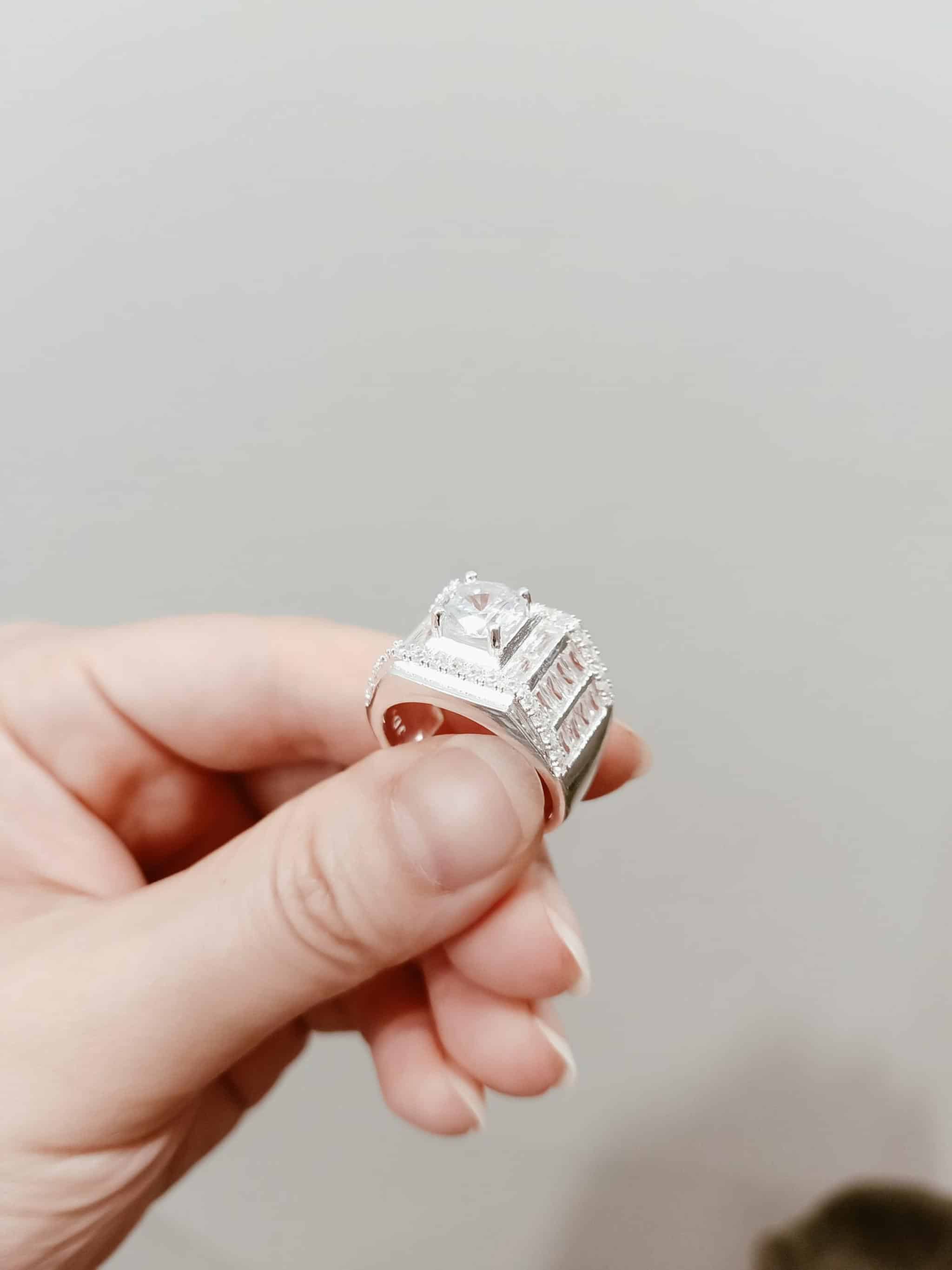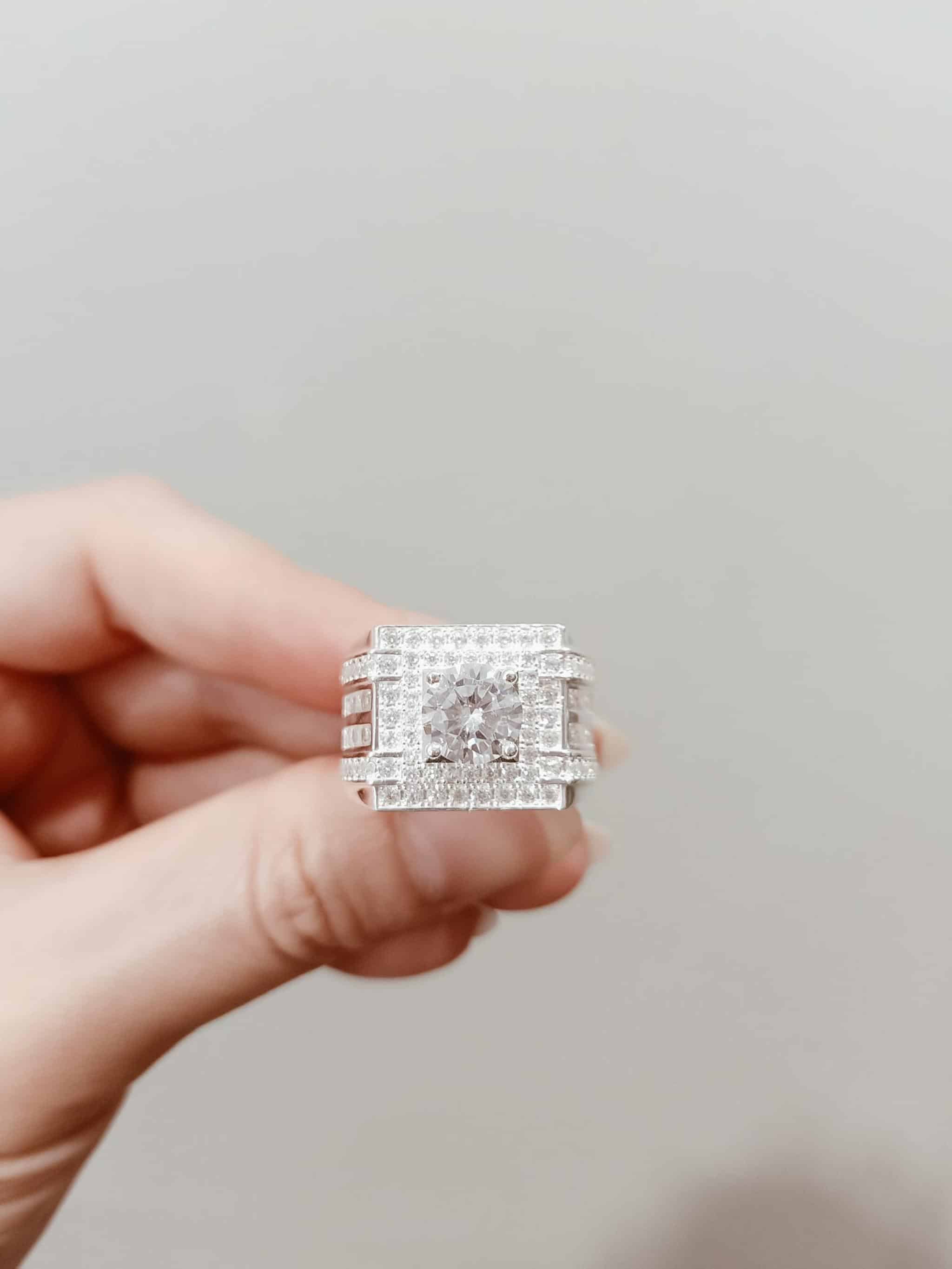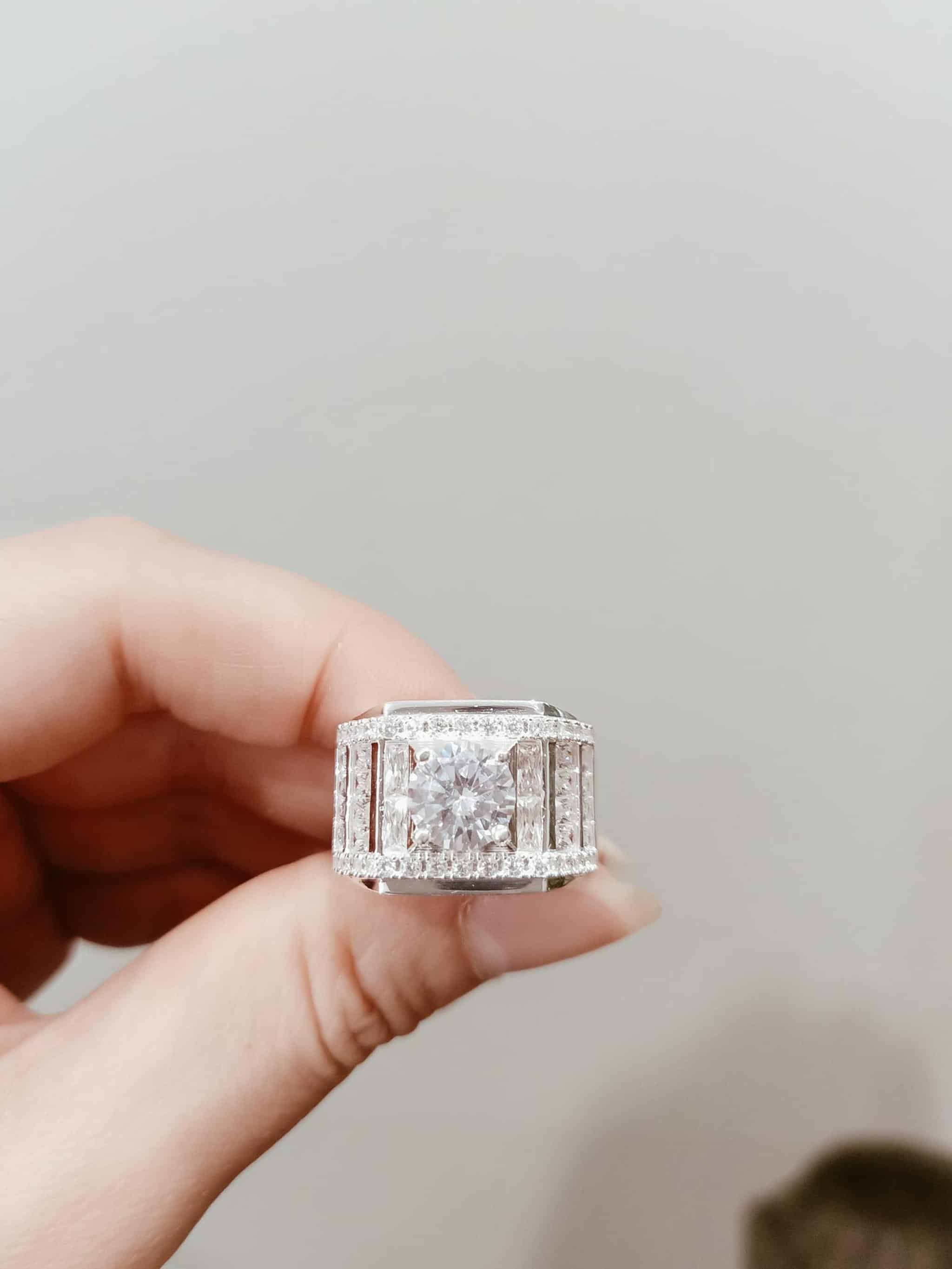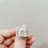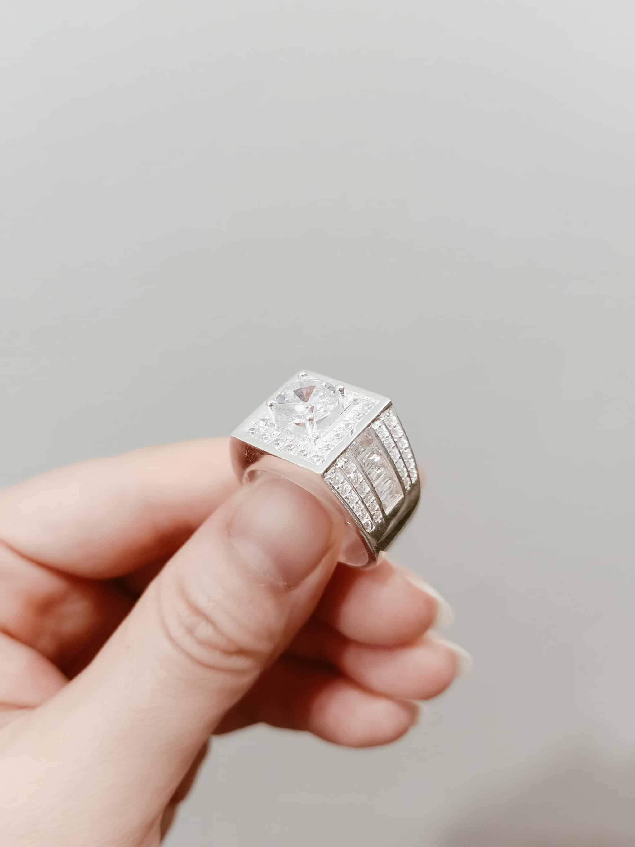 Men’s Round Diamond Big Square Face Pinky Ring Band Iced Out Custom Square Large Simulated Diamonds Silver Ring Hip Hop Bling Gift For Him