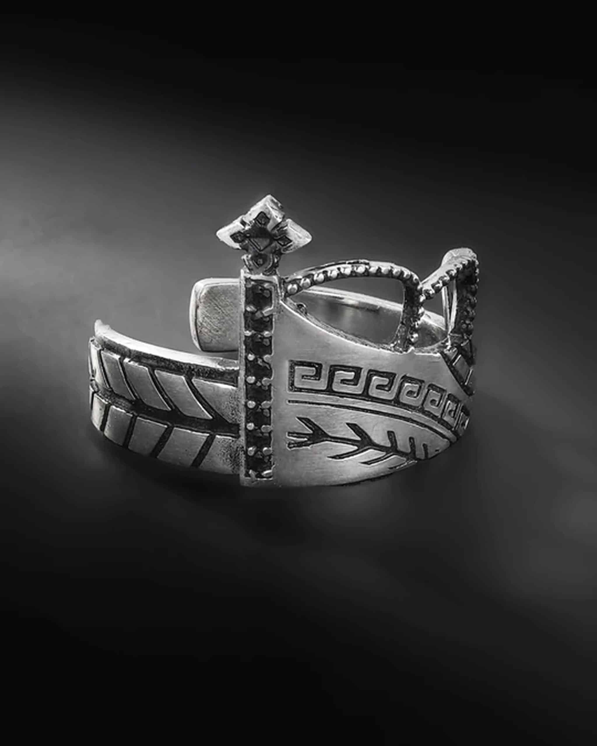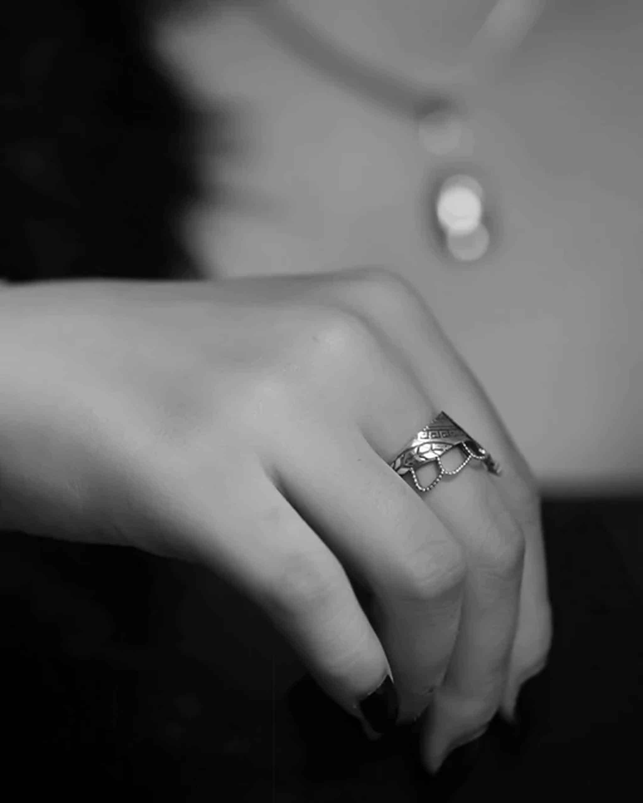 Ring from our “David & Pallas” collection, which is based on King and Queen symbols in Playing cards. Handcrafted Sterling Silver Handmade Each sterling silver ring, pendant, earrings and bracelet is designed and hand-carved by master silversmiths Fits most outfits. Elegant, dusty, luxurious, simple are all suitable. The size is adjustable, suitable for most people