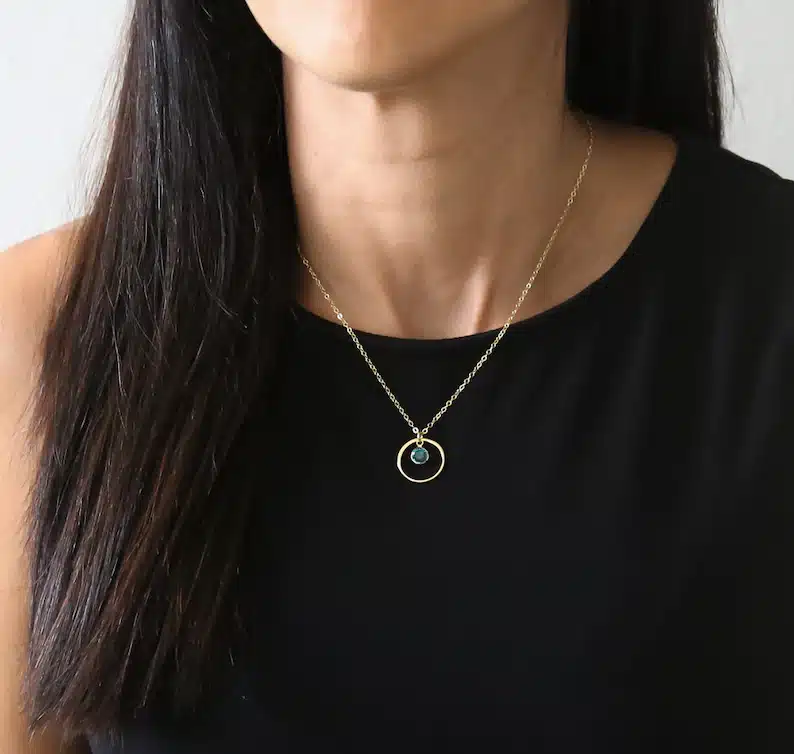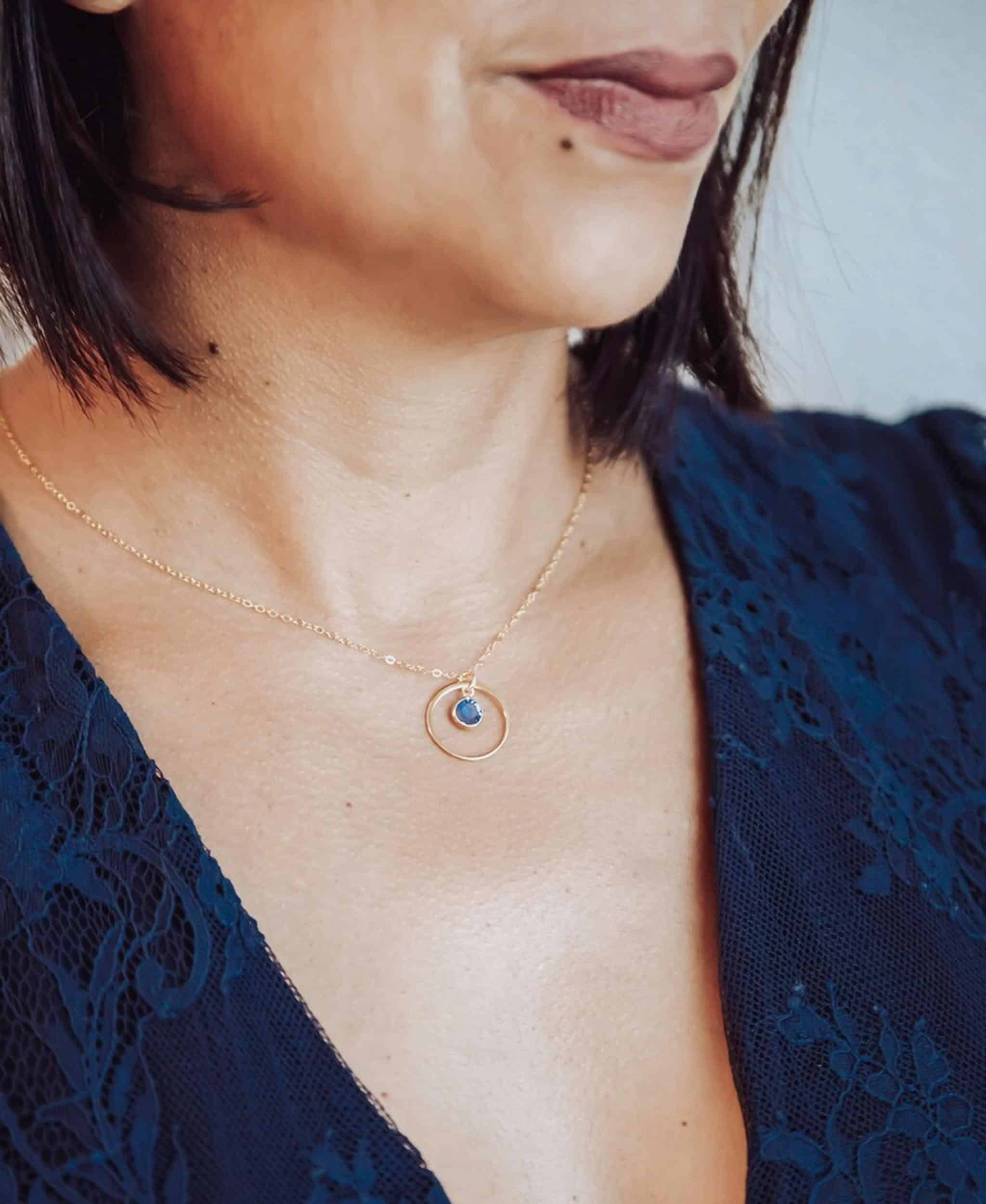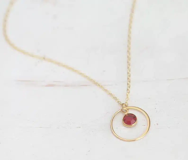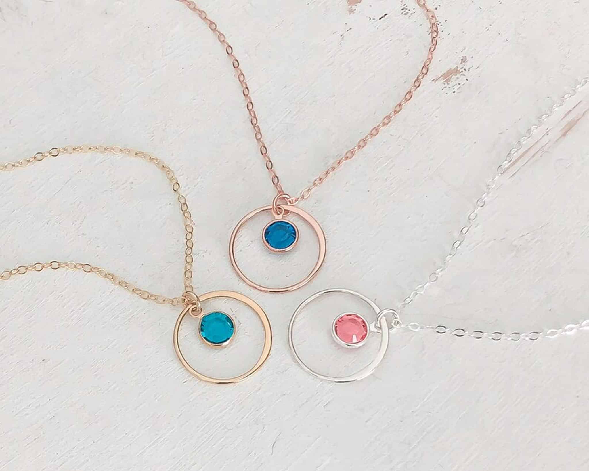 A beautiful and delicate eternity circle necklace with a personalized birthstone of your choice.